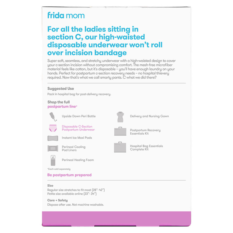 Buy Fridababy Frida Mom High Waist C-Section Disposable Postpartum Underwear, Regular from our Women's Knickers & Briefs range at John Lewis & Partners. Free Delivery on orders over £50.. The high-waisted C-Section Disposable Postpartum Underwear is Step 2 in the Frida Mom 5-step Postpartum Recovery Regimen. Size Regular fits waists 28.