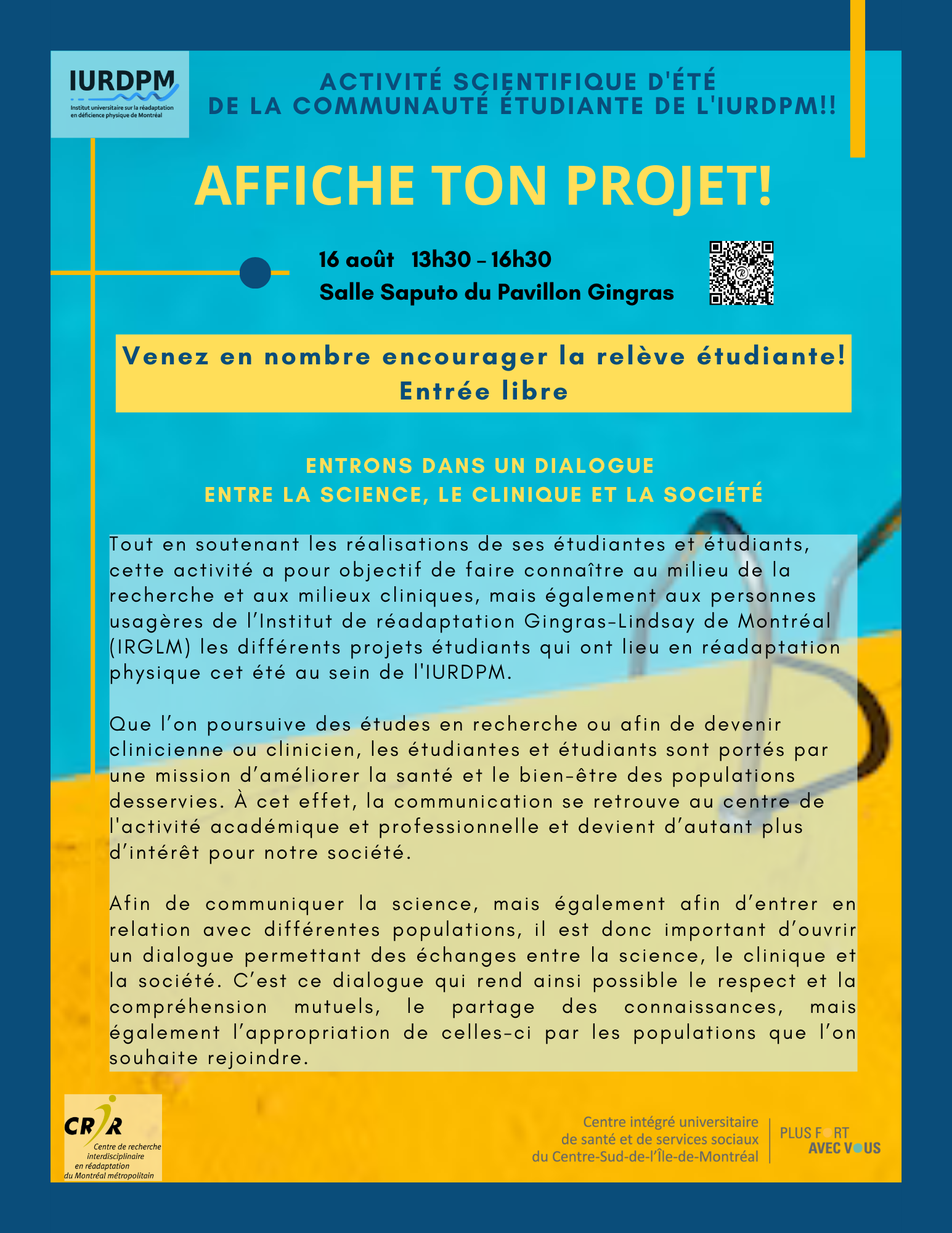 Affiche ton projet Institut universitaire sur la réadaptation en déficience physique de Montréal