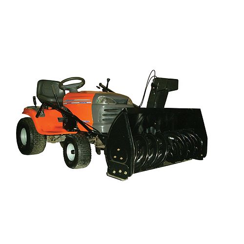 Souffleuses à neige. Déneigez votre entrée en raccordant une souffleuse à neige à votre tracteur. Il est recommandé d'avoir un tracteur à moteur de 14 HP pour assurer une puissance optimale. Pour une meilleure traction, il est conseillé de poser des chaînes et des contrepoids aux pneus.